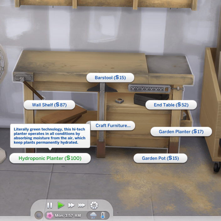 This mod allows Sims to craft the Hydroponic Planter at the woodworking table.