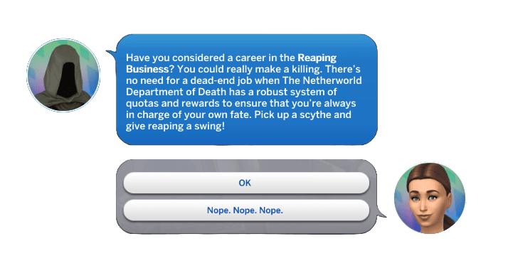 I know how to get my Sims a job. I really don’t need another pop-up!